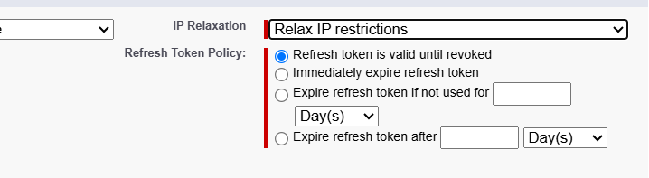 | IP/login-hour restrictions | If the profile has IP restrictions, or the Connected App’s OAuth Policies → IP Relaxation is “Enforce IP restrictions”, the same 401 shows up. Either relax the policy or add your server’s IP to Trusted IP Ranges. |