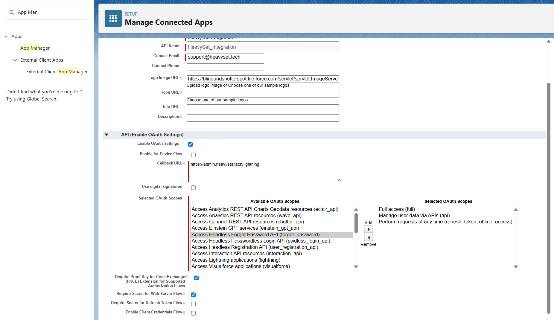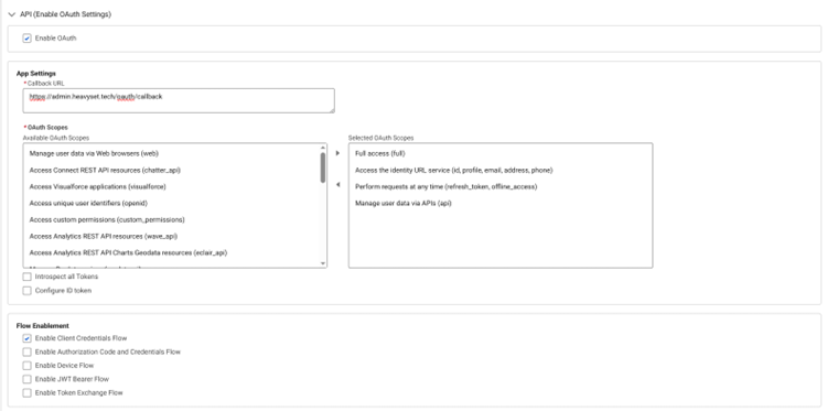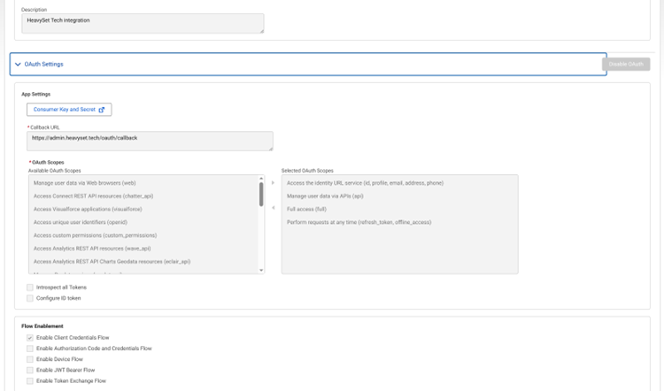 • External Client App Name: HeavySet Integration (Client Credentials)