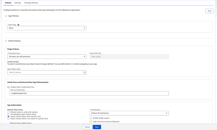 Use this method when configuring Salesforce for HeavySet using the OAuth 2.0 Client Credentials flow. This approach is recommended for Production environments and for orgs using the latest Salesforce External Client App framework.