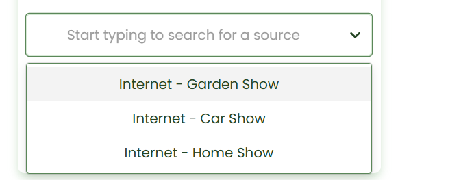 Lead takers can manually choose the appropriate source directly within the form. This is particularly useful for face-to-face appointment settings like trade shows or events.