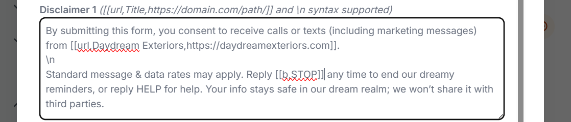 This article walks you through how to create and manage disclaimers, enable opt-in checkboxes, and control form-submission requirements.