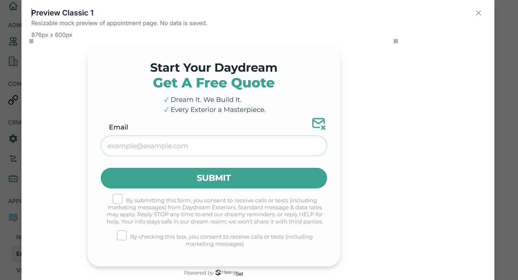 Heavyset Tech now provides a flexible way to add multiple disclaimers and opt-in checkboxes to your appointment form. This feature allows you to present important information to customers and optionally require acknowledgement before submitting the form.